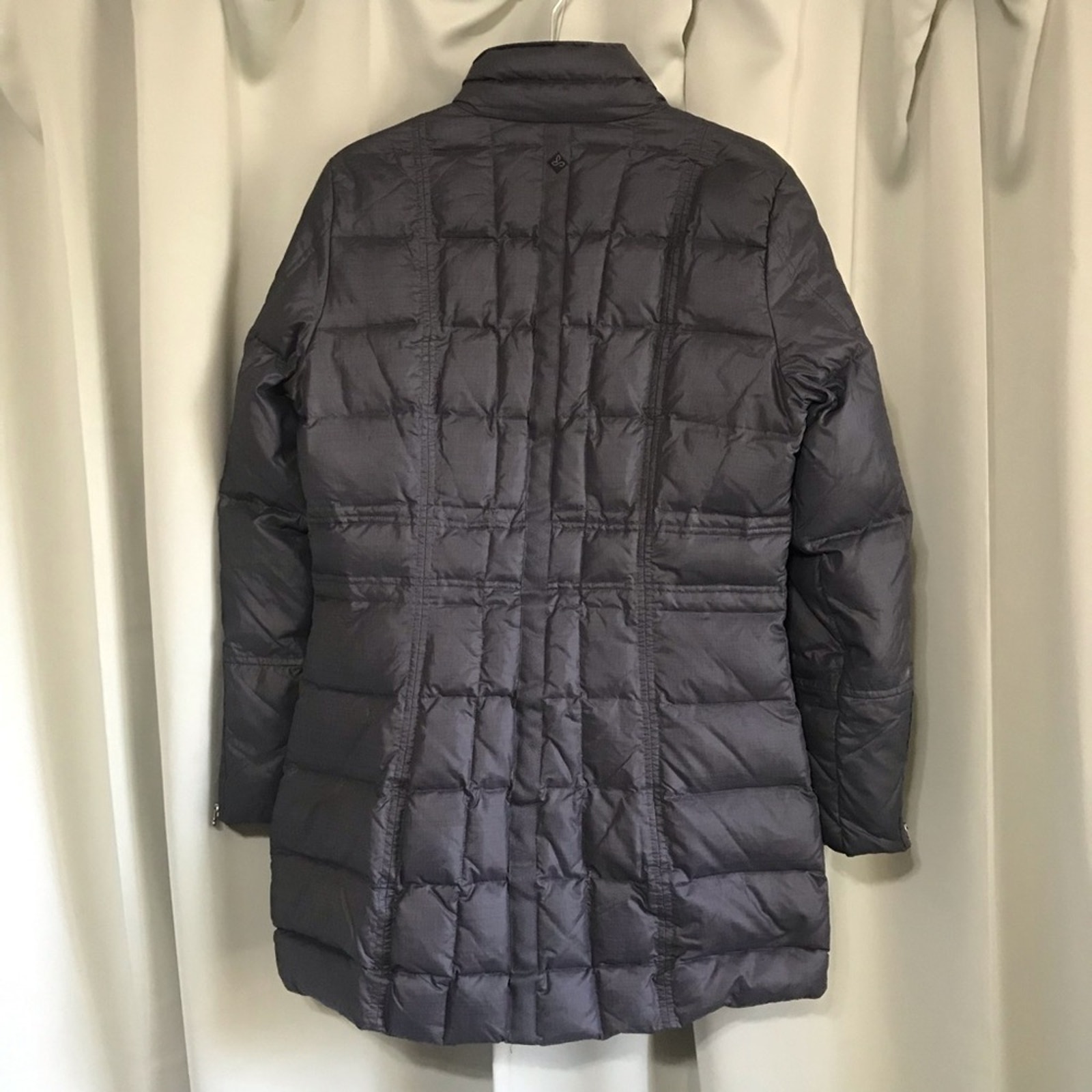 Prana Breathe Quilted Puffer Down Jacket - color is a dark charcoal gray, feather filled down jacket with front zip pockets and a zip front closure. Jacket has some small spots of discoloration (pictured), overall in great condition!