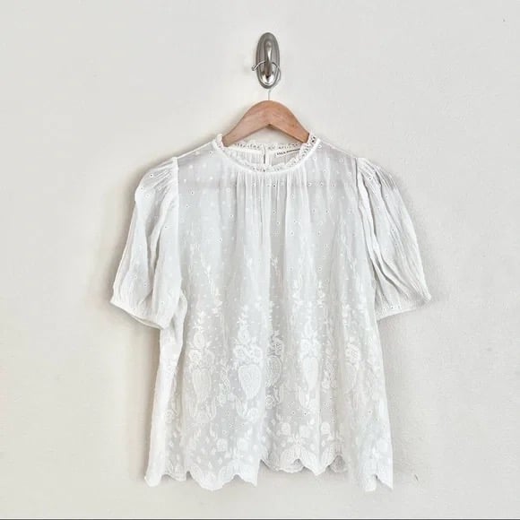 ULLA JOHNSON Emmie Embroidered Ruffle Puff Sleeve Top in Blanc White